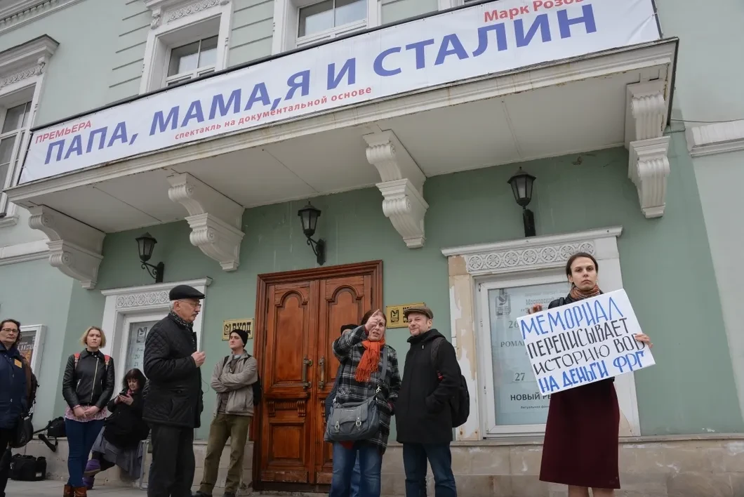 26 апреля историческое общество «Мемориал» наградило победителей школьного исторического конкурса «Человек в истории — XX век», прошедшего в 18-й раз. Церемония награждения прошла спокойнее, чем ожидали организаторы: к входу в театр «У Никитских ворот», где проходило награждение, пришли всего несколько активистов Национально-освободительного движения (НОД) с плакатами «Мемориал — иностранный агент» и «Мемориал» переписывает историю Второй мировой войны на деньги ФРГ». Год назад перед началом церемонии нодовцы облили зеленкой писательницу Людмилу Улицкую, остальных посетителей закидали яйцами, поэтому в этом году церемонию награждения взял под охрану центральный аппарат МВД.