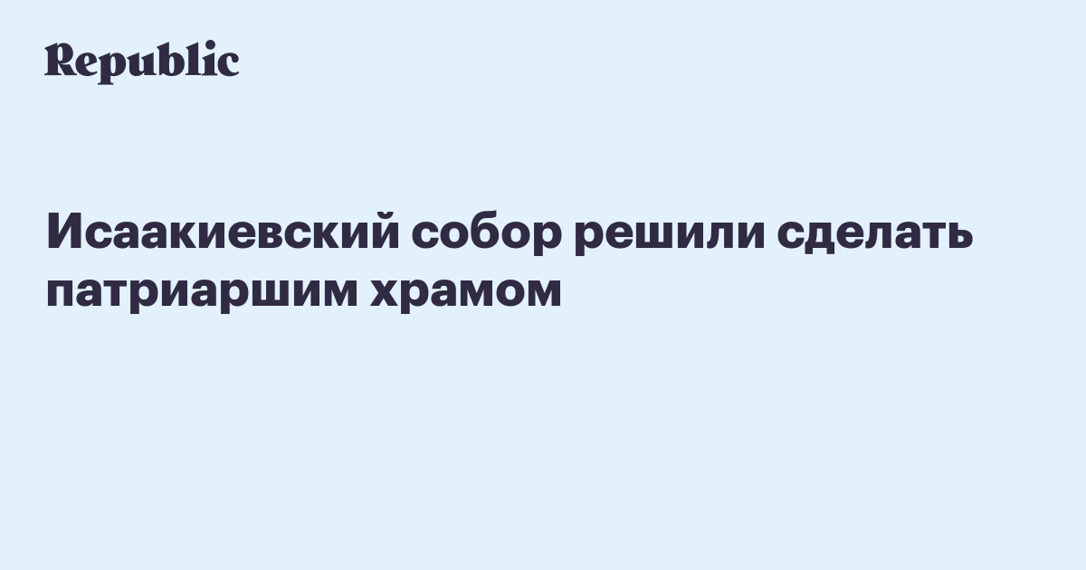 Ожидается, что о передаче Исаакиевского собора в пользование РПЦ петербургские власти объявят 12 июля. До этого сообщалось, что у чиновников «есть желание» передать здание собора РПЦ к Пасхе.