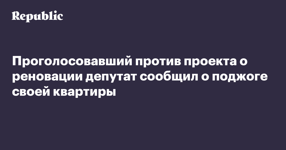 Проголосовавший против проекта о реновации депутат сообщил о поджоге своей квартиры