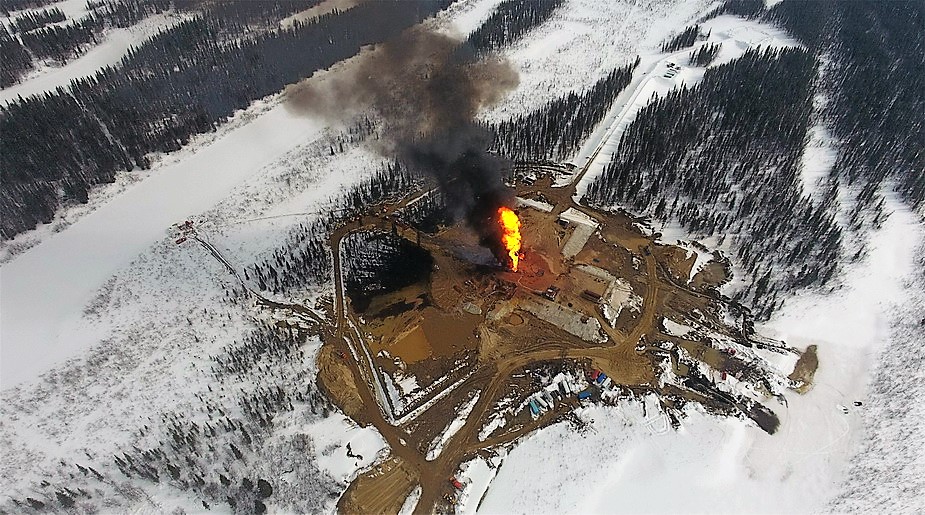 Пожар на месторождении им. Алабушина в Усинском районе начался 10 апреля 2017 года.