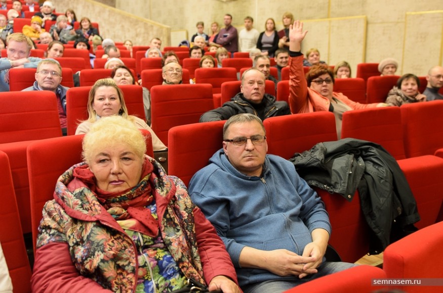 В зале раздался смех и зрители зашумели больше прежнего: «Пусть без бумажки скажет и покороче, по существу!», «Мы здесь прожили всю жизнь, Орбита при нас была построена!».