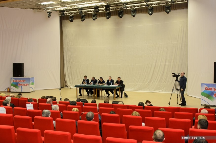 Встреча проходила в администрации города в зале бывшего кинотеатра «Парма-2» под председательством руководителя Совета Сыктывкара Анны Дю. Места в президиуме заняли члены Совета города, представитель компании-застройщика Александр Соков и один из создателей инициативной группы, выступающей против застройки, Станислав Штралер. Он и выступал первым.