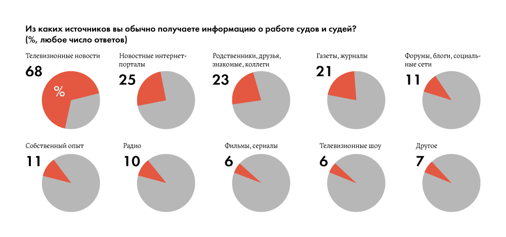Но ведь социологи спрашивают о доверии к судам не только 32% тех, кто в них бывал, а всех. Откуда же берут свое мнение 68%? Если коротко — из новостей. Которые, конечно, никак не отражают реальную работу судов.