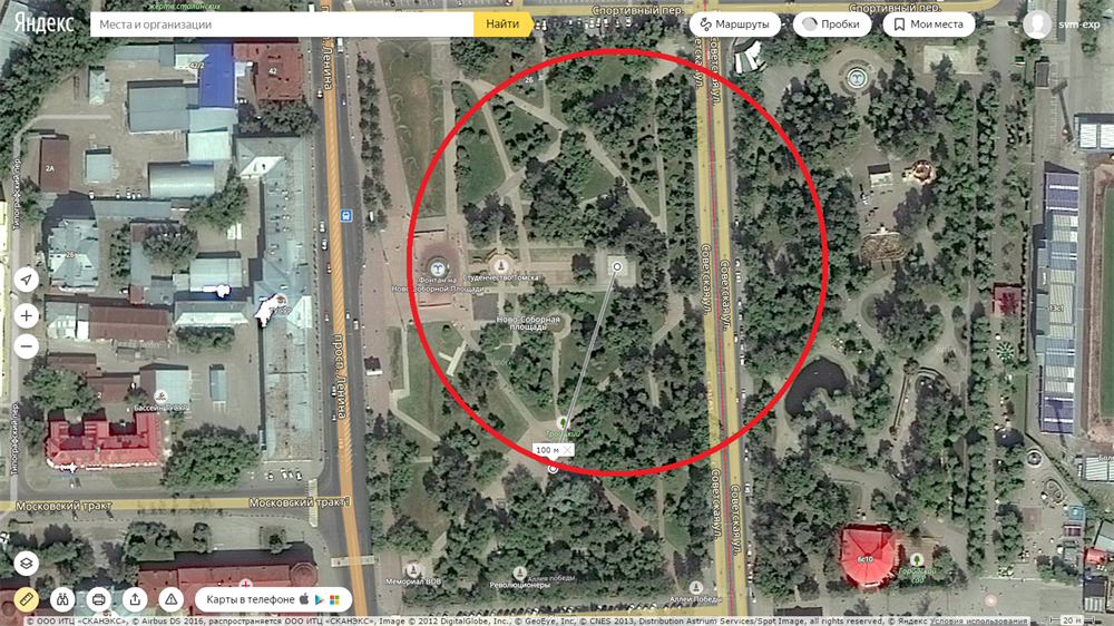 «Так, одна треть круга, радиусом 100 м. и центром в нынешней концертной площадке, находится на ул. Советской и в Городском саду, который, напомню – частная территория, и хотя и доступен для горожан, но, чтобы выступать в нем, нужно будет учитывать и специфические условия, в частности финансовые. Площадка же на Новособорной является общественным благом и доступна для всех. Остаются сегменты справа и слева, но установка сцены в их границах приведет к сносу либо клумбы, либо деревьев. Потому что кроме самой сцены ещё нужна площадка для зрителей. Потому как выступать без зрителей — бессмысленно и обидно. Схема реконструкции площади, выложенная на сайте 3D Томск, показывает, что постоянной сцены не будет.