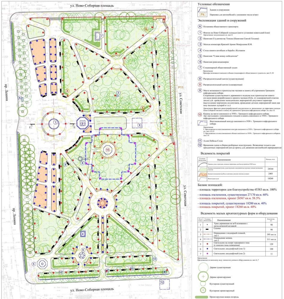 Или, точнее так, либо сцена, либо часовня. И при наличии часовни организуется временная сцена (номер 12 на схеме), на южном углу площади, на углу проезда вдоль СФТИ и улицы Советской: «Возведение только в дни мероприятий (когда проезд автомобилей будет перекрываться)», — то бишь, два раза в год. Так, где будет сцена?