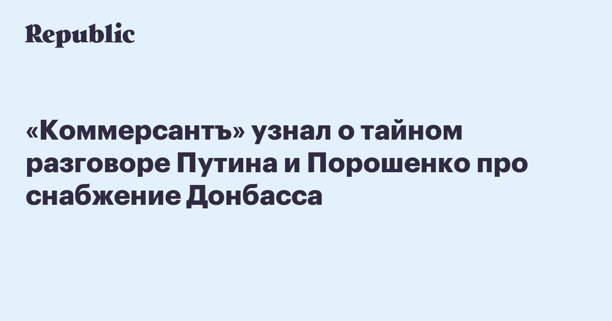«Коммерсантъ» узнал о тайном разговоре Путина и Порошенко про снабжение Донбасса