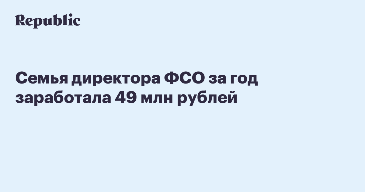 Семья директора ФСО за год заработала 49 млн рублей