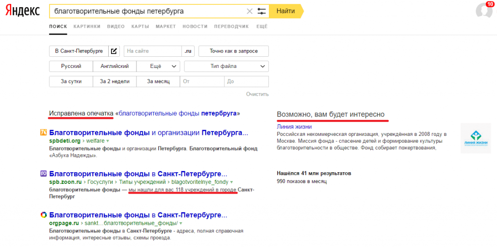 2. Язык. Если читатель просматривает много информации на английском языке, то в выдаче будут появляться англоязычные сайты.