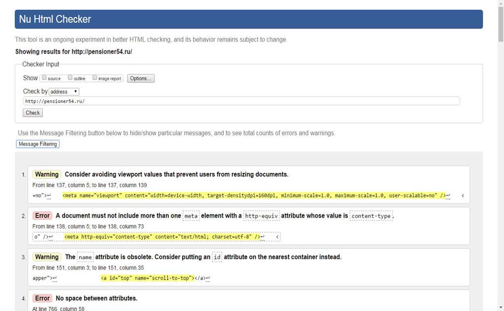 Настройка оптимизации сайта начинается с определения и исправления ошибок в коде верстки сайта. Для этого перейдите на сайт Validator.w3 и введите URL сайта. Валидатор выдаст все ошибки, которые допущены в верстки сайта, и их надо исправить. Это улучшит восприятие вашего сайта поисковыми системами.