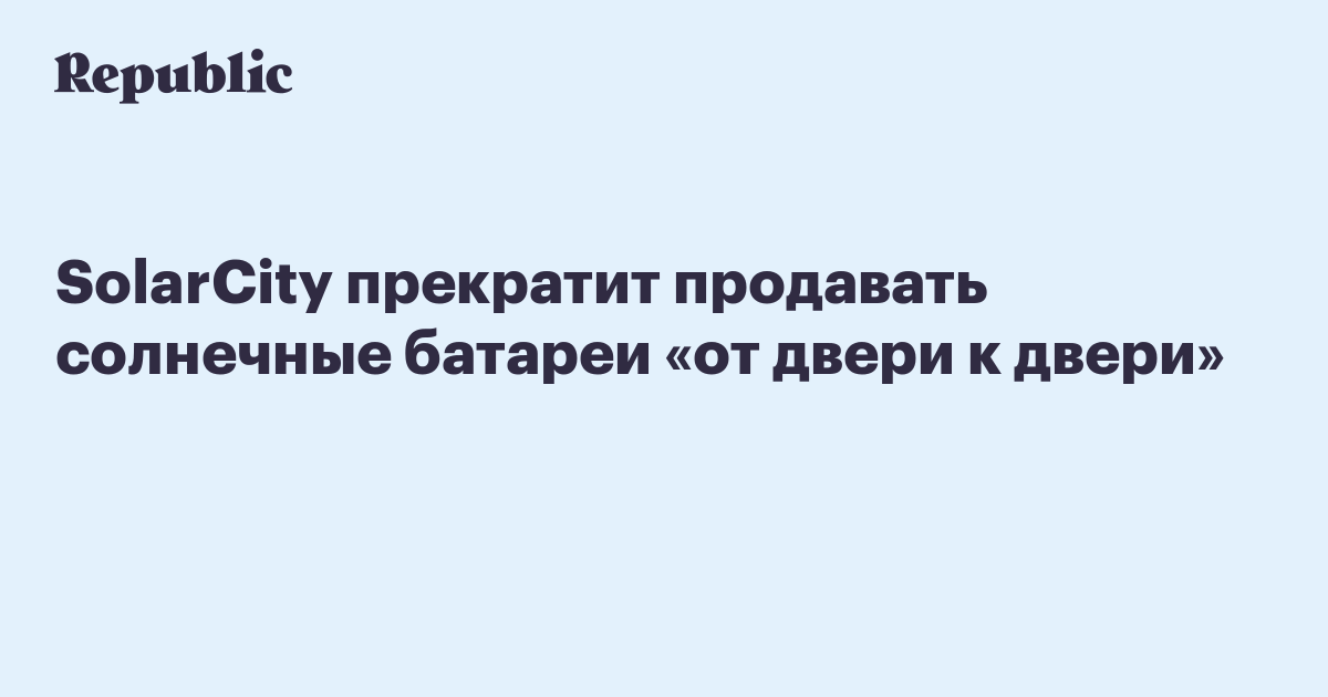 Компания SolarCity, которую Tesla в прошлом году купила за $2 млрд, прекратит продажу солнечных панелей «от двери к двери» (door-2-door). Об этом сообщает Bloomberg со ссылкой на заявление компании.