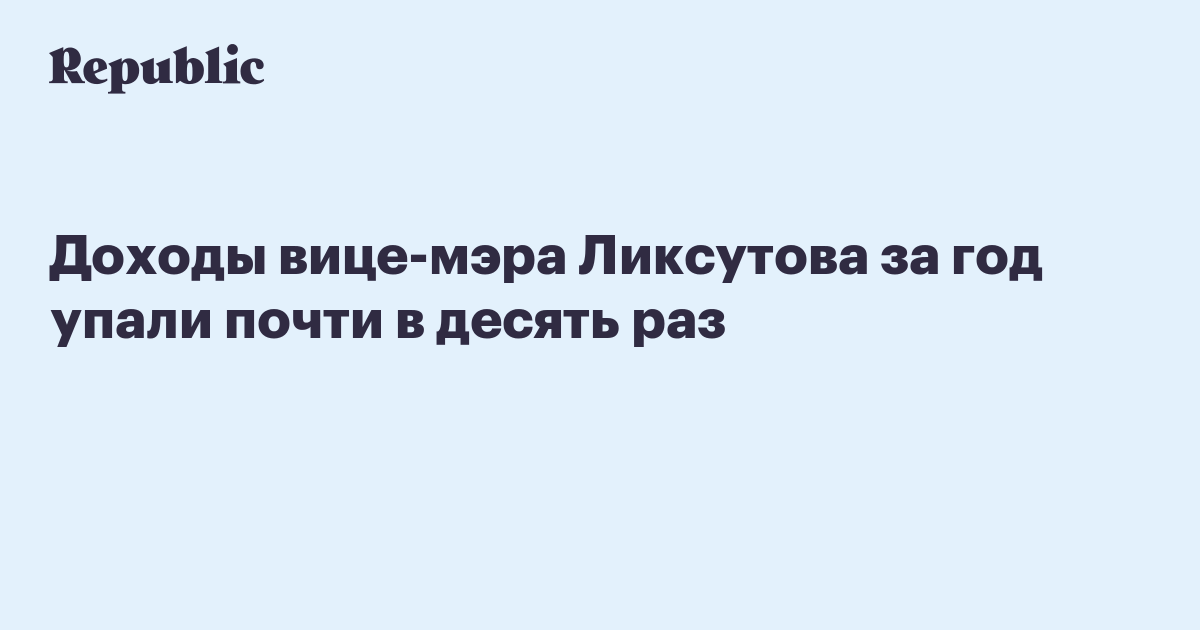 Доходы вице-мэра Ликсутова за год упали почти в десять раз