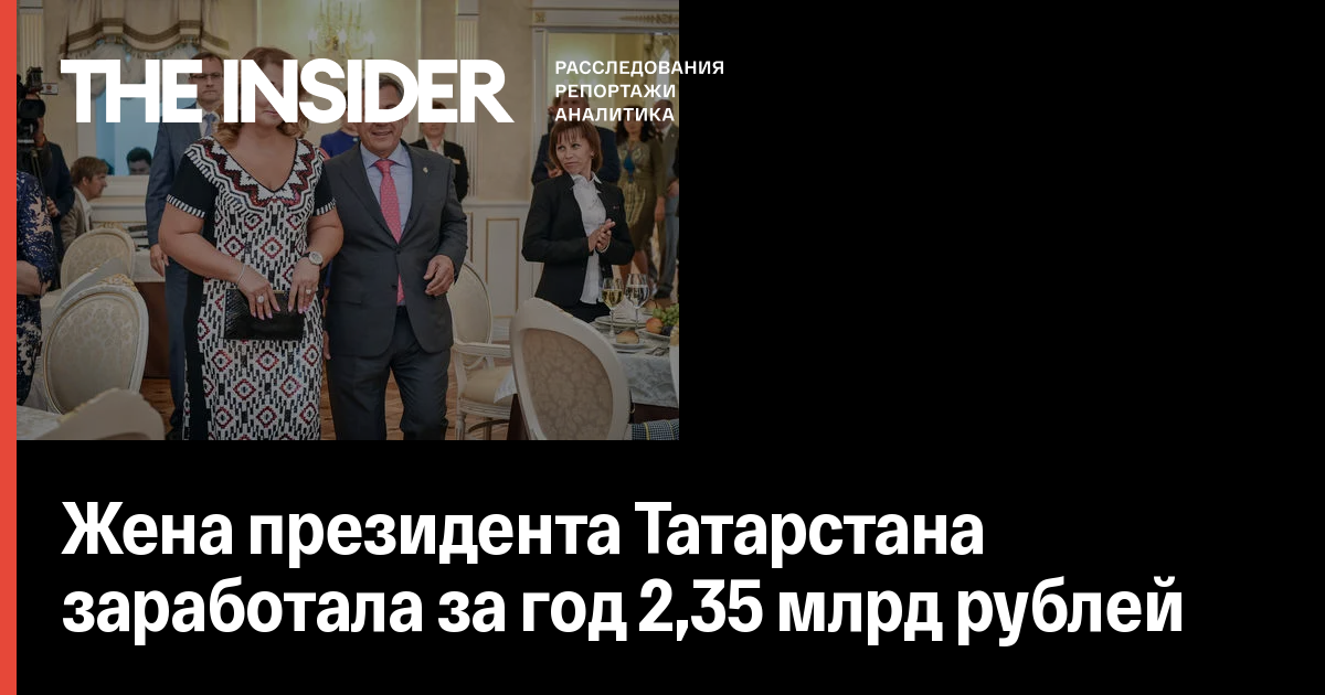 Жена главы Татарстана Гульсина Минниханова заработала за прошлый год 2,35 млрд рублей. Это следует из опубликованной декларации о доходах семьи президента республики.