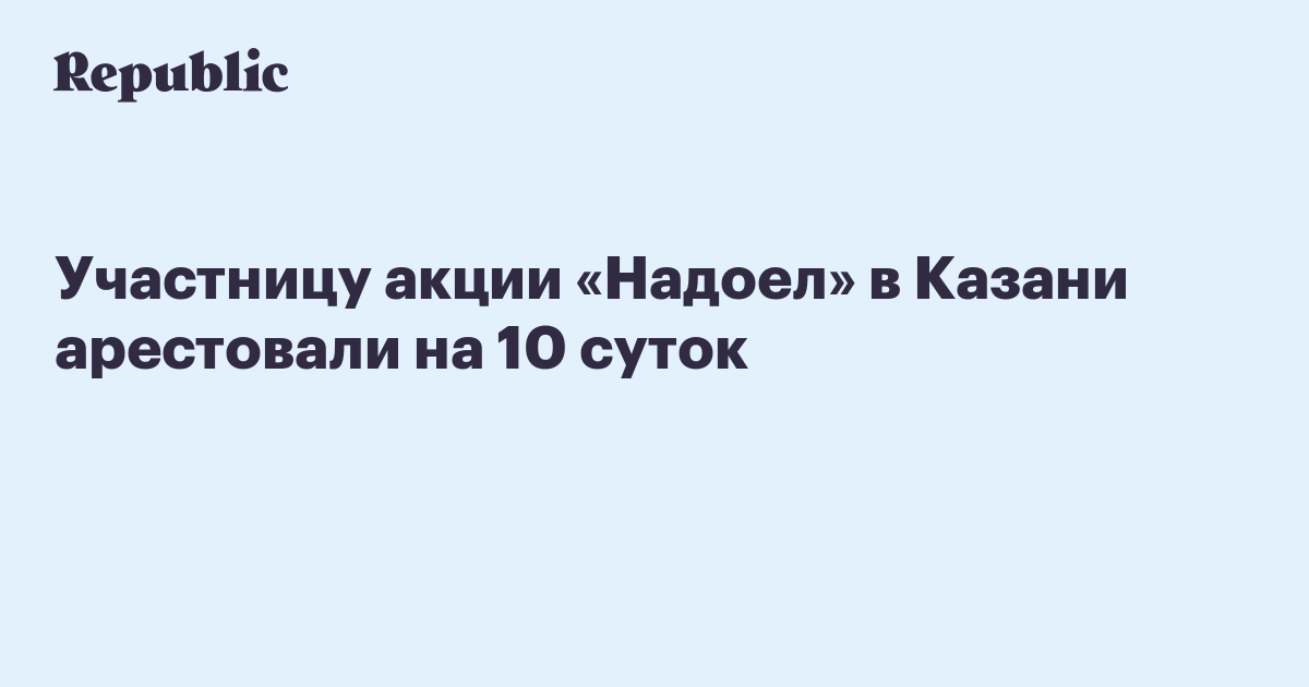 Участницу акции «Надоел» в Казани арестовали на 10 суток