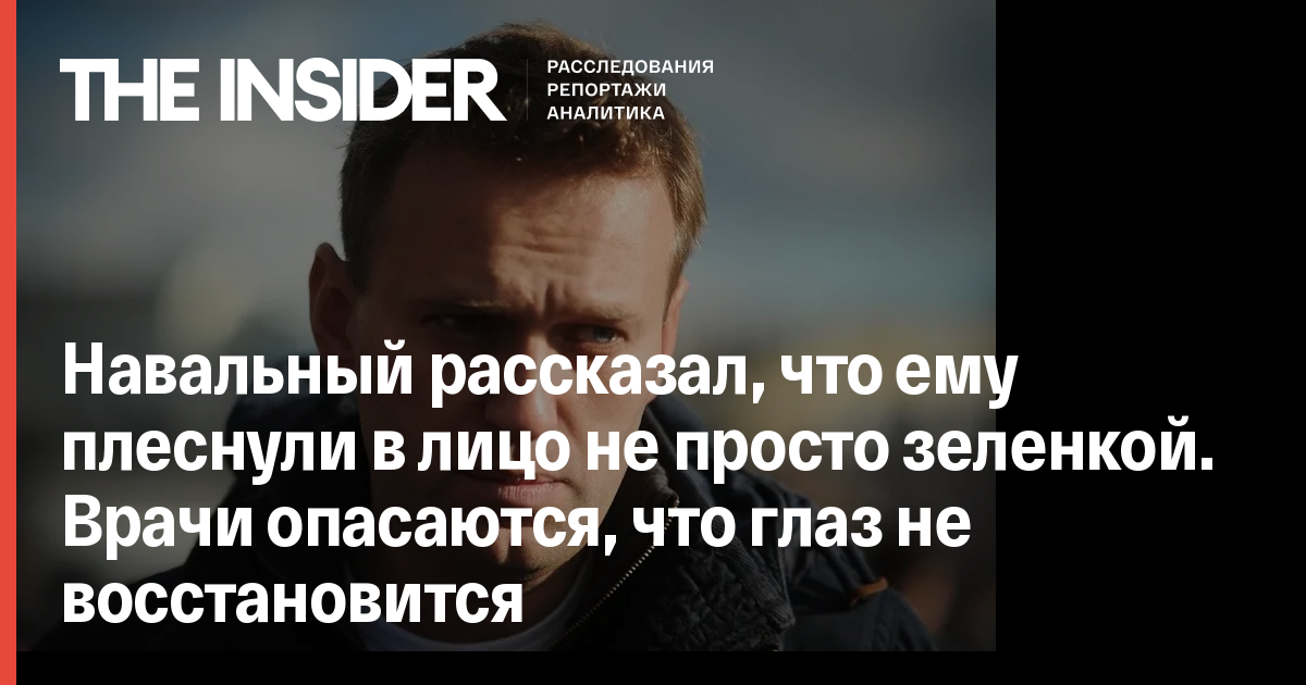 Навальный рассказал, что ему плеснули в лицо не просто зеленкой. Врачи опасаются, что глаз не восстановится