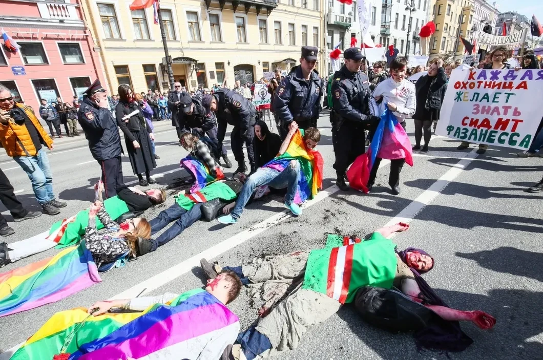 В Петербурге во время первомайской демонстрации группа ЛГБТ-активистов устроила акцию у Аничкова моста. Целью акции было привлечение внимания к внесудебным расправам в отношении чеченцев, подозреваемых в гомосексуальных связях, о которых говорилось в расследованиях «Новой газеты».