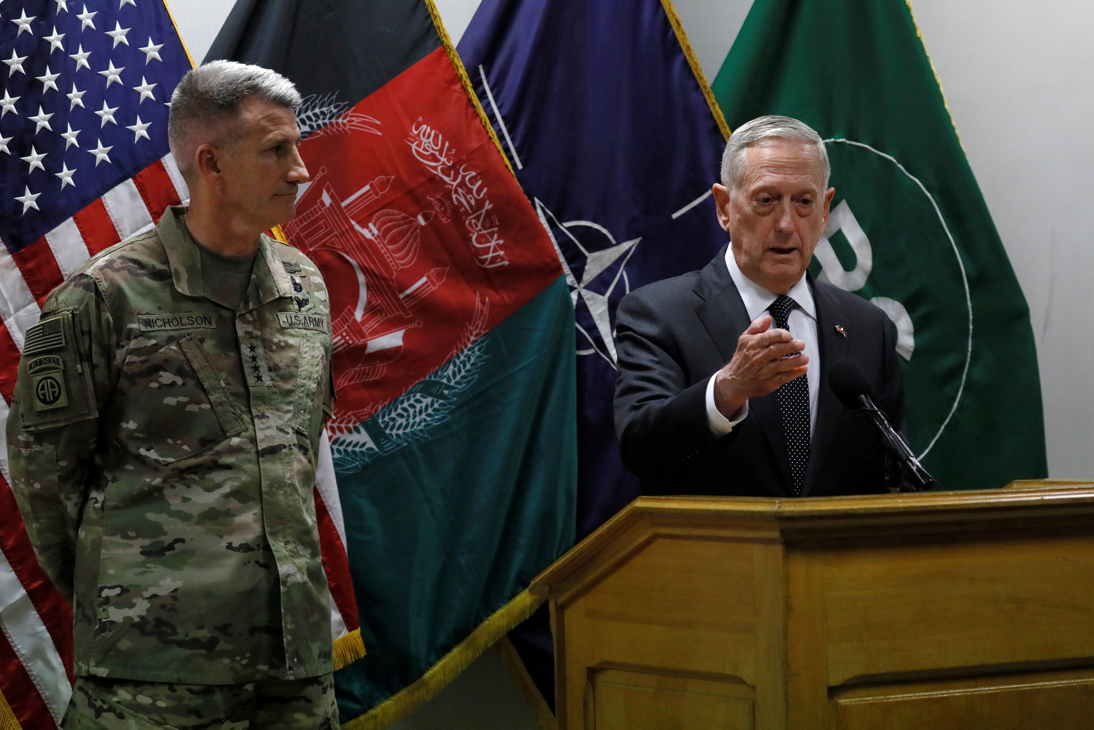 24 апреля в Афганистан в связи с этим инцидентом прибыл министр обороны США Джеймс Мэттис. На совместной пресс-конференции с ним в Кабуле командующий американскими войсками в Афганистане генерал Джон Николсон вдруг вновь косвенно подтвердил сообщения о том, что талибов незаконно снабжает оружием Россия. В ответ на вопрос о достоверности этой информации генерал Николсон заявил: "Мы продолжаем получать сообщения о такой помощи". По словам анонимных источников газеты The Washington Post в Пентагоне, в последние полтора года Москва увеличила поставки талибам военного оборудования и оружия, включая тяжелые пулеметы, под предлогом того, что это оружие будет использовано талибами против террористической группировки "Исламское государство".