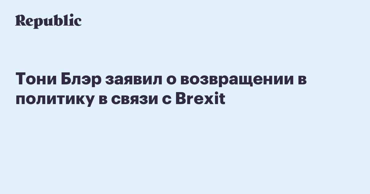Тони Блэр заявил о возвращении в политику в связи с Brexit