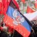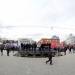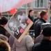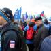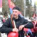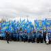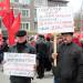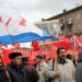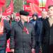 На площадь Ленина коммунисты входили под «Священную войну». На площади уже стояла толпа с белыми и голубыми знаменами — профсоюзы и «Единая Россия».
