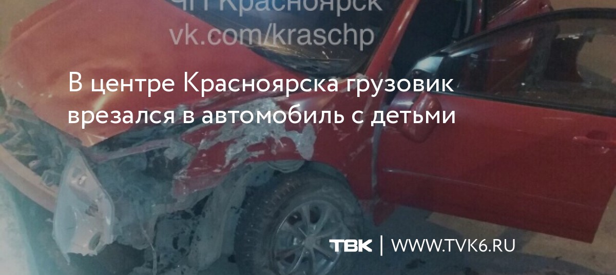В центре Красноярска грузовик врезался в автомобиль с детьми