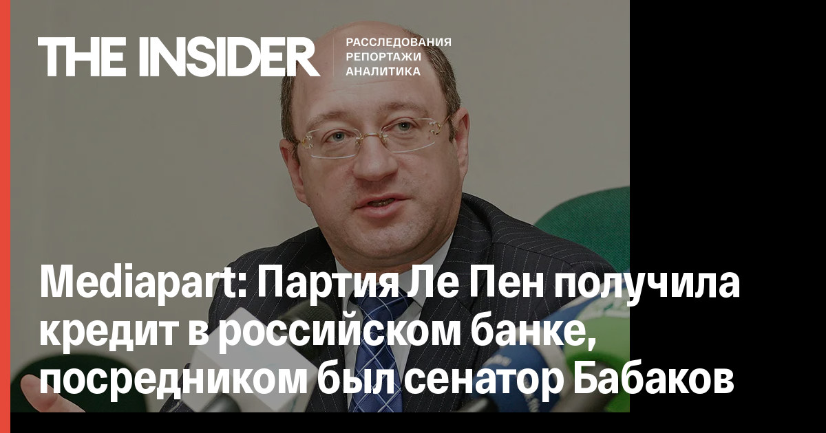 Mediapart: Партия Ле Пен получила кредит в российском банке, посредником был сенатор Бабаков