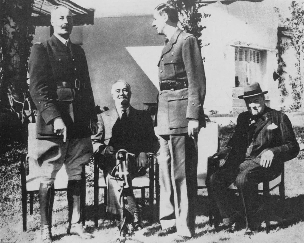 «Его страна прекратила сопротивление, сам он не более чем беженец, и если мы прекратим его поддерживать, он – конченый человек. И вы посмотрите на него!.. Нет, вы посмотрите на него! Воображает из себя Сталина с двумястами дивизиями за спиной» — эти слова Черчилль сказал за спиной де Голля 17 января 1943-го. Черчилль и Рузвельт устроили конференцию в Касабланке не только для того, чтобы обсудить действия на фронтах и помощь Советскому Союзу, но и затем, чтобы склонить де Голля к сотрудничеству с «вишисто-сопротивленцем» Жиро.