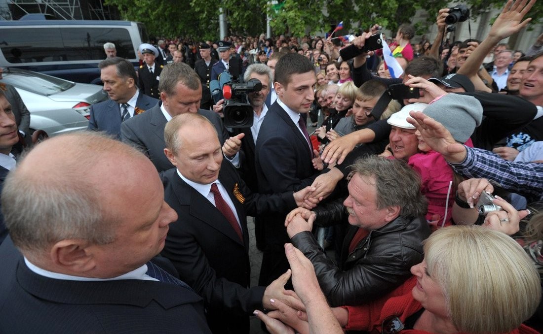 Владимир Путин в Севастополе. 2014 kremlin.ru «Путинское большинство», считают эксперты, умеренно консервативно: главные ценности для него — укрепление государства (82%), спокойная жизнь (82%), укрепление обороноспособности страны (69%). Самые важные личные приоритеты — здоровье (65%) и рост доходов (60%). Информацию большая часть избирателей Путина получает по телевидению. Даже те, кто активно пользуются интернетом в YouTube, например, склонны смотреть ролики и записи с телеканалов.