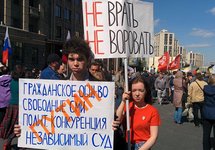 Участники митинга вышли с плакатами и растяжками против политических репрессий и убийств, против коррупции и за демократические свободы, в частности за честные выборы и независимость СМИ и судов. Националисты развернули большой баннер в поддержку политзека Дмитрия Демушкина.