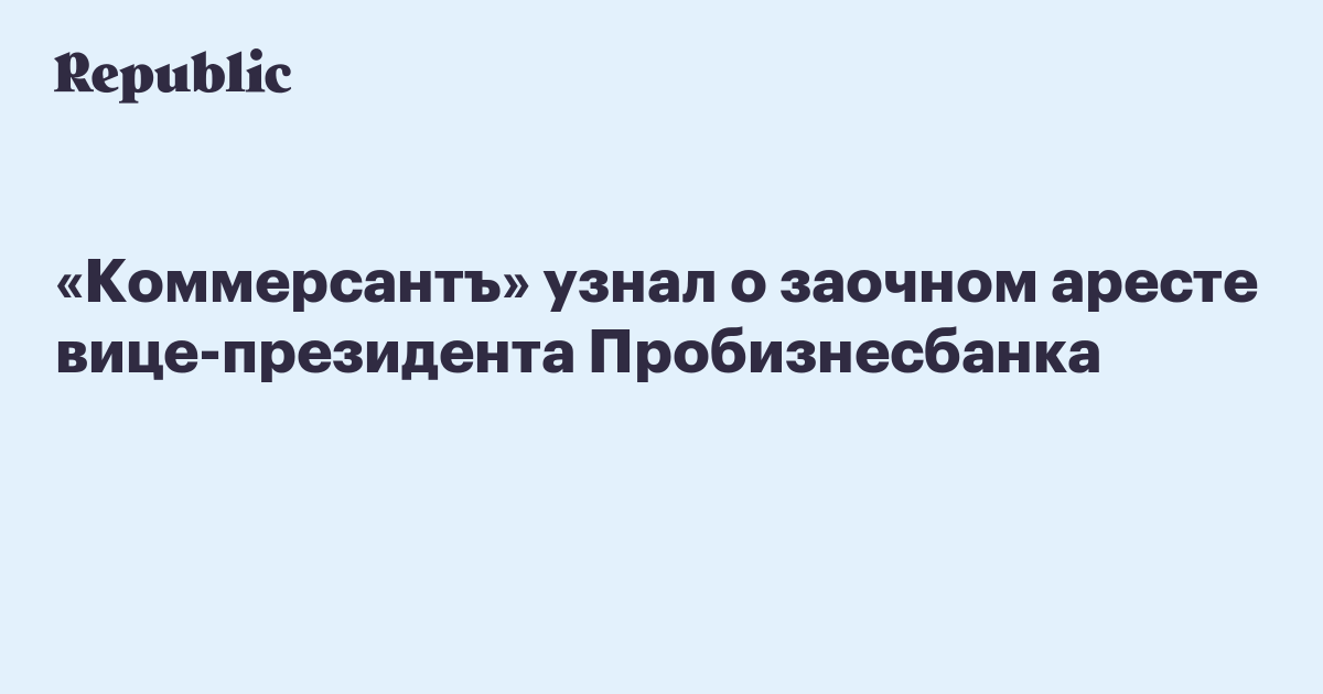 «Коммерсантъ» узнал о заочном аресте вице-президента Пробизнесбанка