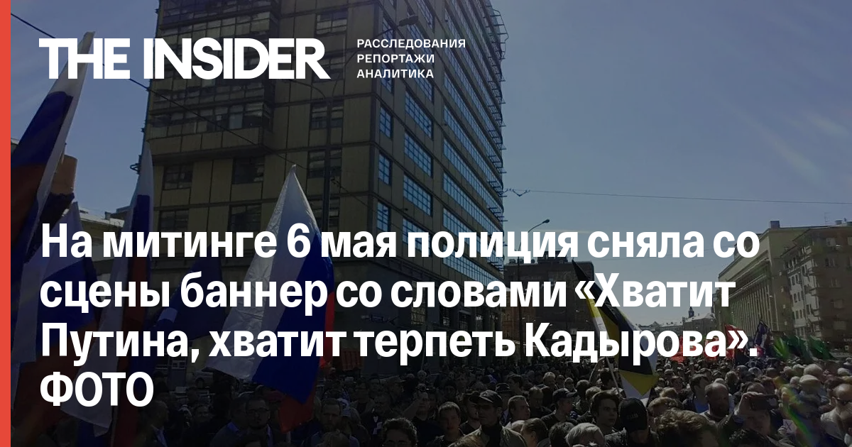 На митинге 6 мая полиция сняла со сцены баннер со словами «Хватит Путина, хватит терпеть Кадырова». ФОТО