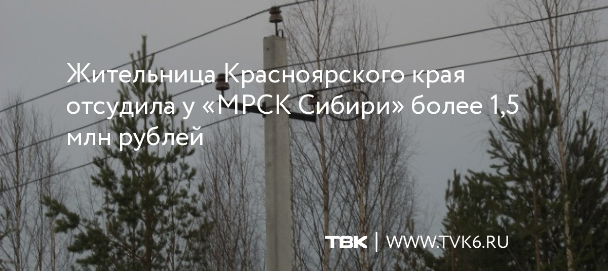 Жительница Красноярского края отсудила у «МРСК Сибири» более 1,5 млн рублей
