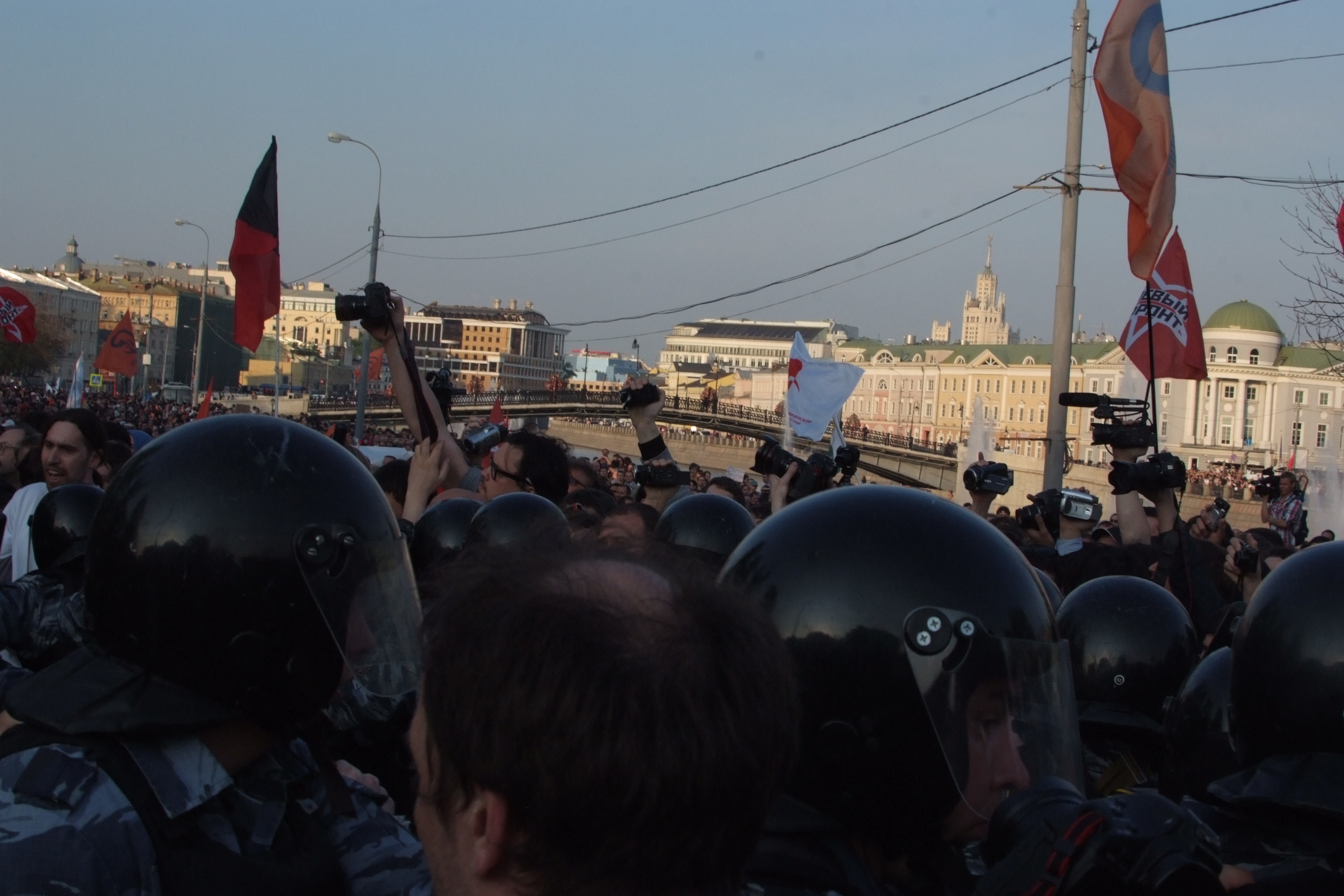 События 6 мая 2012 сначала развивались по тому же сценарию, что и на предыдущих протестных акциях – демонстранты собрались на Калужской площади в Москве, чтобы пройти шествием по Большой Якиманке и завершить мероприятие митингом на Болотной площади. Шествие началось без происшествий, однако, когда колонны демонстрантов повернули в сторону Болотной площади, где должен был состояться митинг, началась давка. Лидеры протеста – Алексей Навальный, Сергей Удальцов – сели на асфальт возле кинотеатра "Ударник", требуя расширить проход на Болотную площадь и пропустить участников акции в зону митинга. Начались локальные столкновения с полицией. Митинг в итоге не состоялся, более 400 человек задержала полиция.