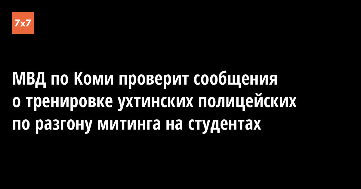 Министерство внутренних дел по Коми назначило проверку сообщений о тренировке ухтинских полицейских: 5 мая они учились разгонять митинг, в роли протестующих были студенты горно-нефтяного колледжа. Об этом 7 мая сообщила руководитель пресс-службы регионального МВД Вера Железцова.