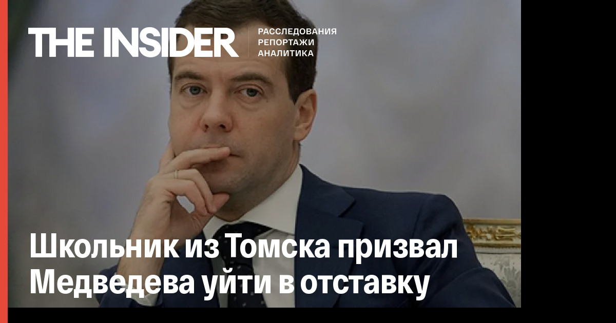 Ученик 11-го класса Русской классической гимназии № 2 в Томске Сергей Чайковский написал открытое письмо премьер-министру Дмитрию Медведеву с призывом уйти в отставку. Письмо опубликовано на сайте томского телеканала «ТВ2».