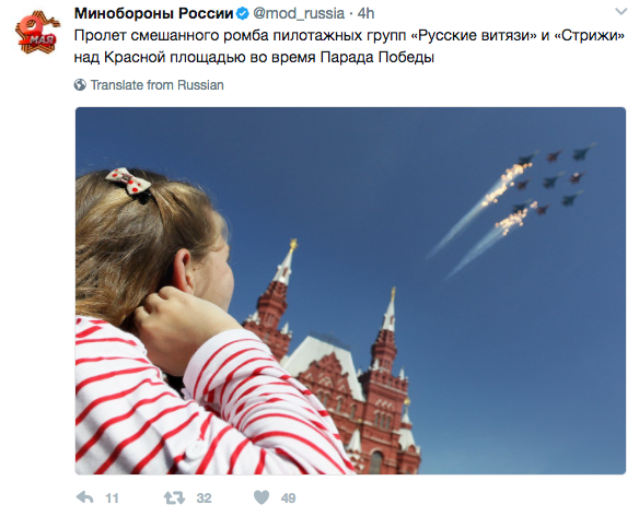 Твит был опубликован в 12:02 по московскому времени 9 мая 2017 года.
