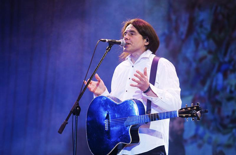 Без бороды 53-летний лидер группы «Калинов мост» выглядит молодо даже вблизи, а на сцене — тем более. Фото: Андрей Кокшаров