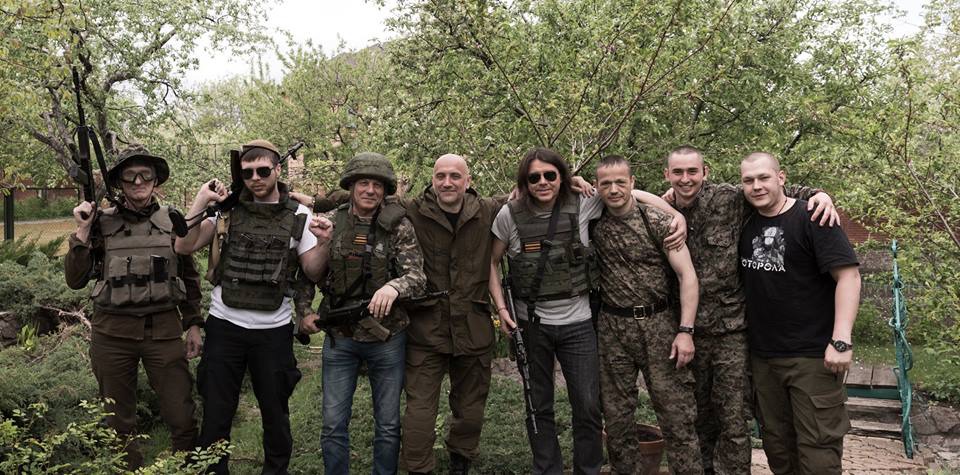 Прилепин и Ревякин (четвёртый справа) в Донбассе. Май 2017 года.