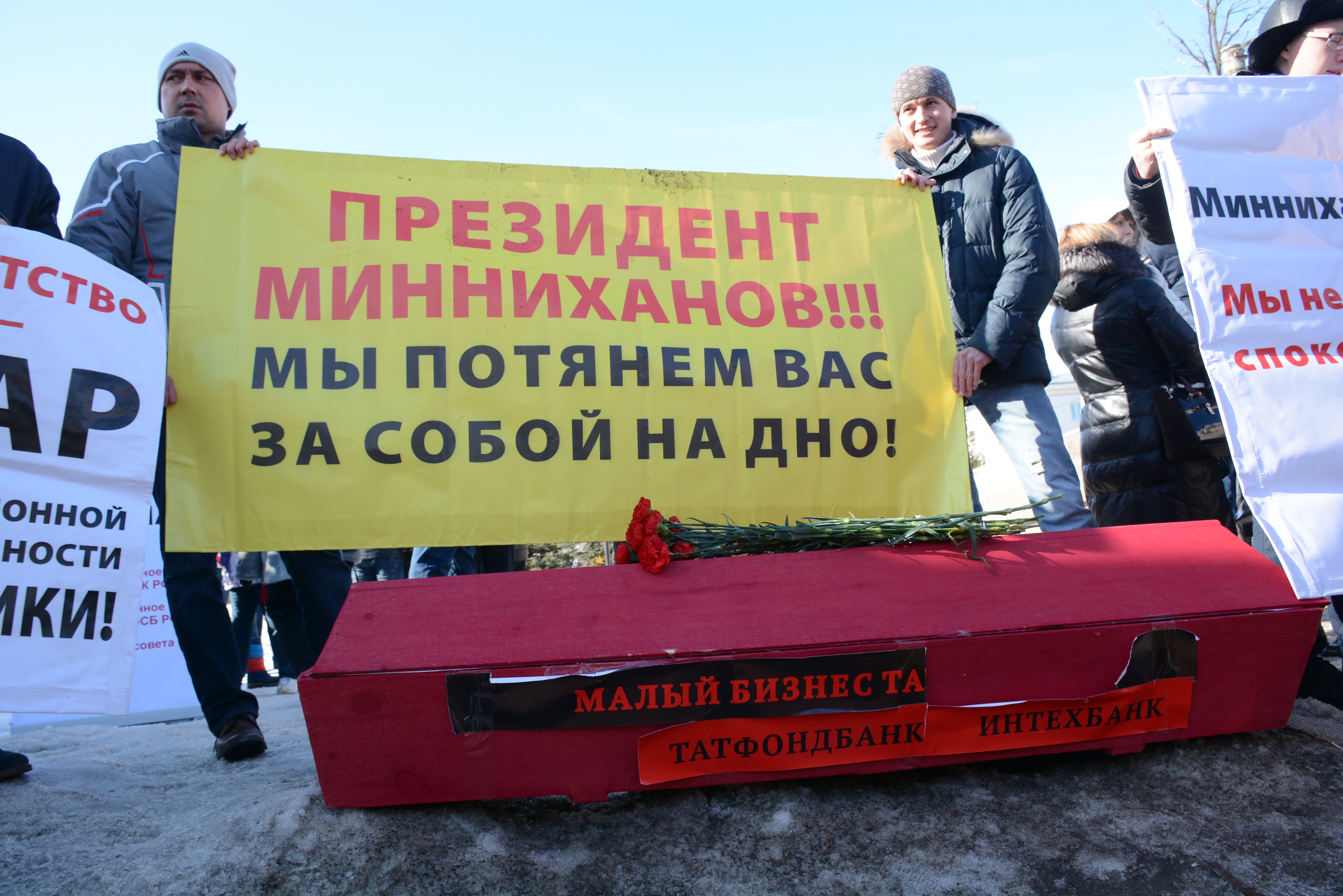 3 марта Банк России объявил об отзыве лицензий у Татфондбанка и Интехбанка. С этого времени в Казани не утихают волнения вкладчиков. В апреле Арбитражный суд Татарстана признал банкротами Татфондбанк и Интехбанк.