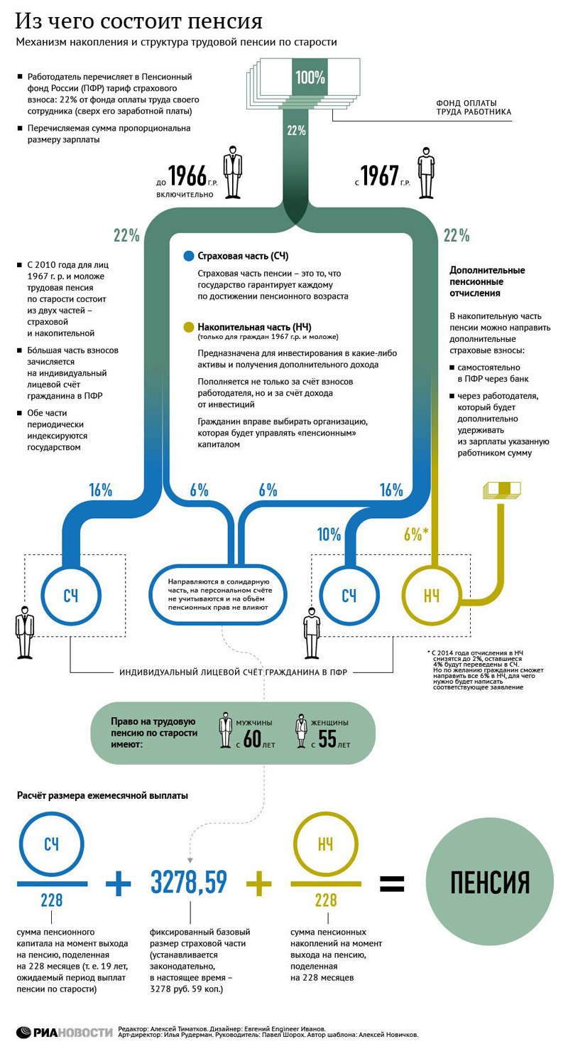 Среднемесячная зарплата работников организаций составляет по Республике Коми 41365 руб. (до вычета 13% налога). Не надо меня ругать — это данные Росстата за 2015 г. За 2016 данных не нашел, но для нас это не принципиально. Это значит, что работнику в год начисляют почти 500 тыс. рублей (округлим для удобства). От этих денег работодатель считает 22% и платит еще 110 тыс. рублей в год живыми деньгами в ПФР.