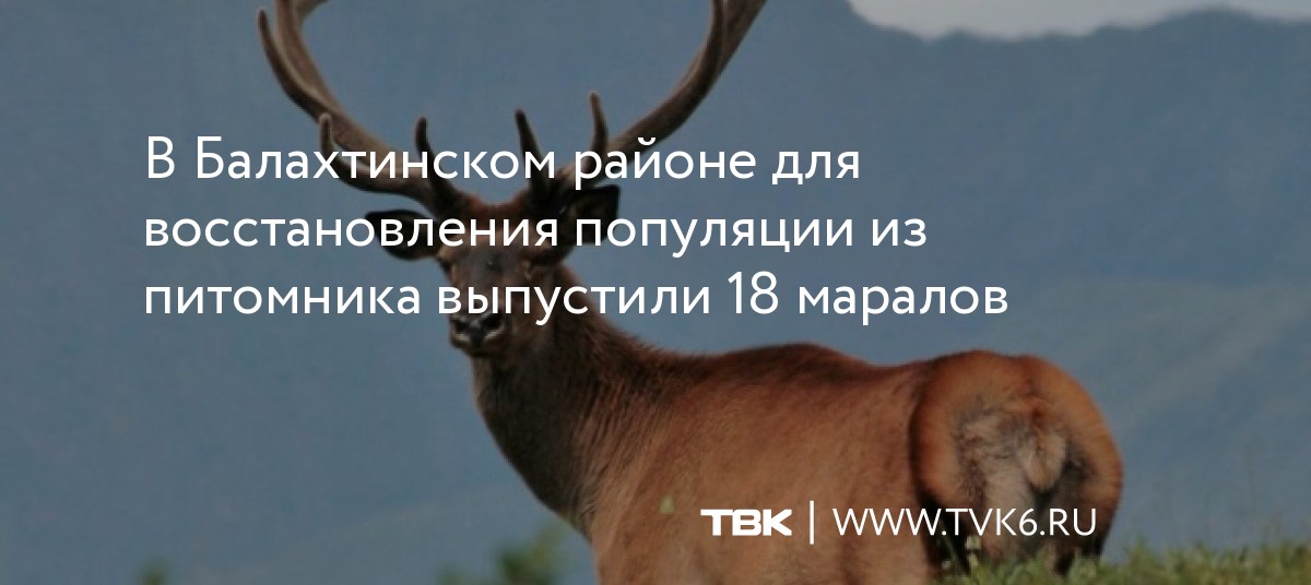 «В питомнике мы наблюдаем хороший прирост поголовья животных. Положительная динамика позволила нам выпустить на волю 18 молодых маралов. На протяжении некоторого времени мы будем за ними наблюдать.В последующем они мигрируют в другие территории и начнут самостоятельный образ жизни. На сегодняшний день проводимые мероприятия – это самый оптимальный способ восстановления популяции данного вида копытных», – рассказал заместитель министра природных ресурсов и экологии Красноярского края Владимир Званцев.