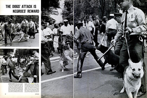 Разворот из журнала LIFE за 17 мая 1963 года Черная поэтесса Клаудиа Ранкин, как и Мотен, отказывается считать, что между расами достигнут примирительный консенсус, — она говорит от имени «разгневанных черных в пострасовой Америке», критикуя в том числе и идею post-blackness, «постчерноты». Она желает разозлиться, и ей помогает в этом воображаемый мотив отражения и сходства. Она фантазирует о том, что думает о ней белый мужчина: «И что я услышала? “Я не обязан отчитываться перед тобой, черная девчонка”. И хотя, когда я последний раз смотрелась в зеркало, я выглядела как моя черная мать, а не так, как она выглядела, когда была черной девочкой, я подумала о себе словами из стихотворения — черная девочка — и разозлилась еще больше. И хотя я понимала, что это я думала за него, а вовсе не он сам говорил мне это, все же, когда оскорбление на самом деле нанесено, это оскорбление слышно везде, даже в воображении». Это почти буквальное определение воображаемого в лакановском смысле (и когда в этом тексте я пишу о цвете кожи как о воображаемой категории, я имею в виду именно его). Да, угнетение существует, и цвет кожи имеет значение для другого, но сам «черный» субъект ведет диалог с зеркалом, завороженный своей воображаемой идентификацией с образом черной матери, — и слова «белого другого» о «черной девчонке» возникают как фантазм.