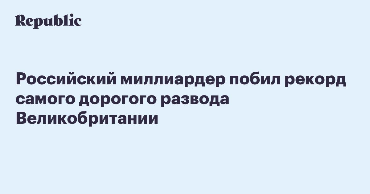 Российский миллиардер побил рекорд самого дорогого развода Великобритании