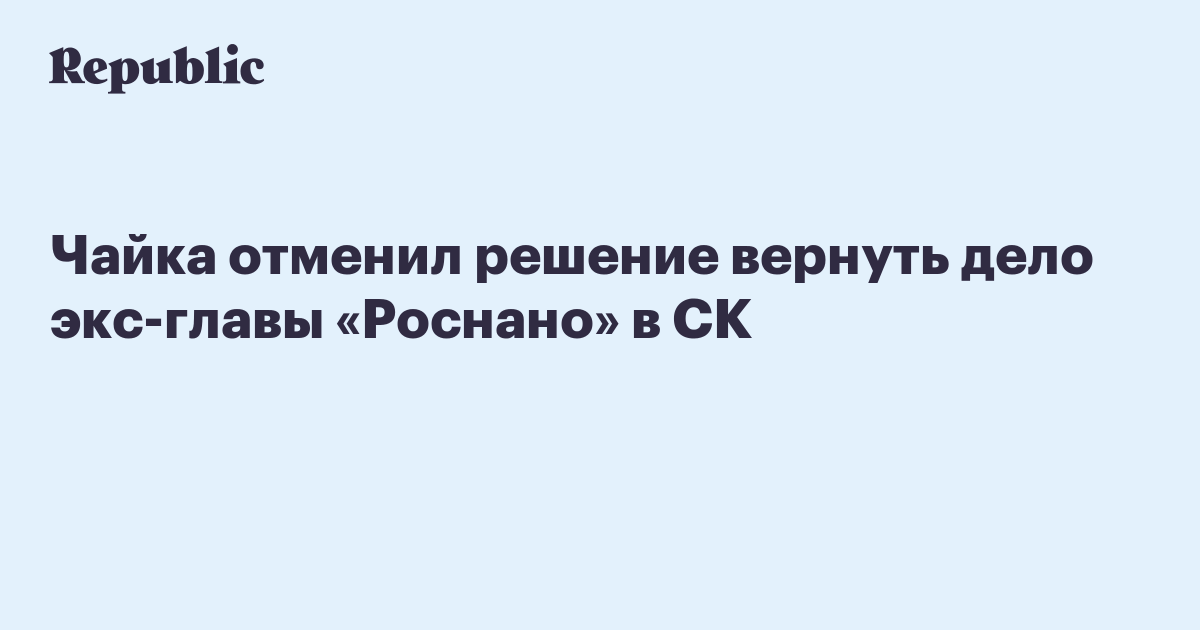 Чайка отменил решение вернуть дело экс-главы «Роснано» в СК