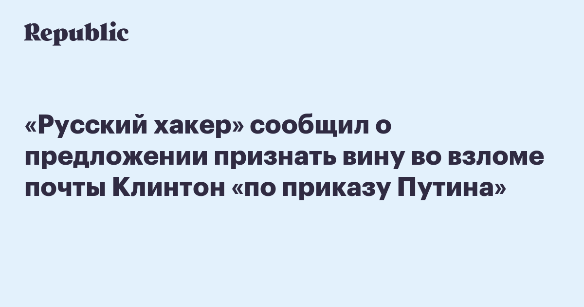 «Русский хакер» сообщил о предложении признать вину во взломе почты Клинтон «по приказу Путина»