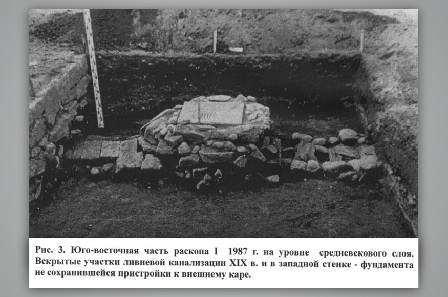 А. СПИРИДОНОВ: Большая часть культурных напластований на усадьбе связана с интенсивным каменным строительством конца XVIII — начала XIX века. Под этими поздними напластованиями выявлен культурный слой мощностью до 40 см в депрессиях скалы, который датирован позднесредневековым временем. То есть XV век там гарантирован, XIV век под вопросом. За это я могу ручаться как профессионал.