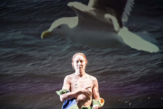 © Jean-Louis Fernandez Васильев еще во время последних гастролей той, прошлой, «Медеи», еще на представлении в Дельфах в 2006 году, уже решил для себя: ежели возникнет снова такая возможность, ежели обломится подарок судьбы ему и Валери — он выстроит весь спектакль в амфитеатре. Не в маленьком камерном боксе на двести человек, не как элитарный спектакль для любителей-ценителей-знатоков, но как открытое, почти площадное действо для всех, для той широкой публики, которая поневоле образовалась за эти годы. Поневоле — потому что все эти обременительные, мучительные проблемы нынешней волны беженцев, этого нескончаемого потока бегущих леммингов, — все это возникло и проявилось лишь сейчас. Это Васильев со своей тонкой настройкой истинного художника, со всеми своими мороками темных сновидений мог пред-видеть, пред-чувствовать нечто подобное еще прежде, чем политики обрекли нас на эту беду. Это он догадался заранее. Или скажем так: Хайнер Мюллер со своей постбрехтовской склонностью к «эпическому театру» накликал беду, которая покинула пределы эстетических предпочтений, да вот так и прошлась себе запросто коваными сапогами по судьбам десятков, сотен тысяч — совсем как пришедшие с другой стороны воины Ясона погуляли, куражась, по разоренной Колхиде. Художник слышит издалека. Вот и Васильев знал уже, что будет амфитеатр, огромный зал на манер греческой театральной чаши-линзы, — пространство, монументально укрупняющее действие. И он точно знал, что нужен второй экран сзади, за первым, чтобы сообщить всему действию некий мифологический размах. Но когда мы только приехали десантом в Страсбург смотреть эту чудесную площадку — большой зал, названный в честь моего любимца Кольтеса, — когда только начали примеряться со своими видеопроекторами, осваивая пространство сцены, — нам всем сразу же стало ясно, что лишнего городить ничего не надо, что изображение можно просто положить на кирпичную стенку, где волны и чайки разбрызгались мозаичными осколками, стали светиться красным изнутри, но главное — обеспечили зрителю вот это странное головокружение, ту «морскую болезнь» и «качку», о которой поет Барбара, сетуя на свою коварную, обманчивую любовь.