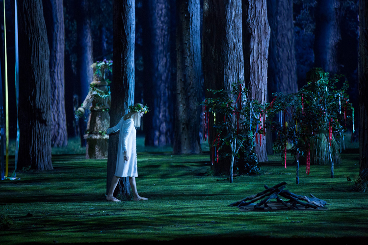 © Elisa Haberer / OnP Снегурочка (Аида Гарифуллина) у Чернякова не проявляет никакого смущения, вполне спокойно идет на контакт с людьми, целуется с ними при встрече-расставании. В ее скромности игры столько же, сколько в открытости и экстравертности Купавы. И игра эта совсем не так убедительна (умение Чернякова специально ставить «плохую» актерскую игру стало одним из сильнейших впечатлений от его «Иоланты/Щелкунчика»). Но в ней нет ни капли инаковости или жертвенности. Тем более холодности. Ее любовь не требует никаких мистических пинков Весны, она остается верна Лелю и умирает, обращаясь к нему.