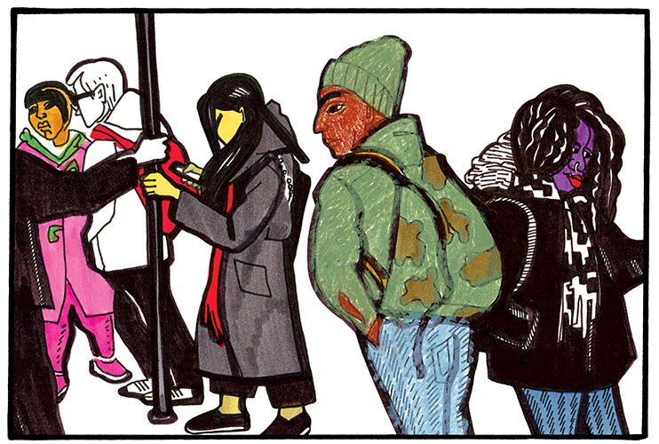 Первую неделю в Нью-Йорке я монтировала свою выставку и ничего не видела, кроме сабвея, на котором добиралась до галереи. В сабвей, как и в московское метро, не зайти без билета, вход преграждают различные конструкции — либо громоздкие турникеты, либо вращающиеся цилиндрические клетки. Но рядом с ними не стоит человек в красной шапке — на большинстве станций в целях экономии нет сотрудников метрополитена. Вас будут ожидать только автоматы для покупки билетов, часто работающие со сбоями. Приложить и убрать кредитную карту — так полагается по протоколу, и, когда после пятнадцатой попытки у меня не получилось купить билет и попасть в метро, я почувствовала себя очень одиноко. Мимо пробегали ньюйоркцы, каждый из которых рассчитывает только на себя. «В России ты нигде не один. Тебя контролируют и, обругав, нахамив, все же впихнут внутрь, — думала я, стоя перед железной дверью, которая отказывалась вращаться, — может быть, грубый контроль — тоже форма какой-никакой заботы?»