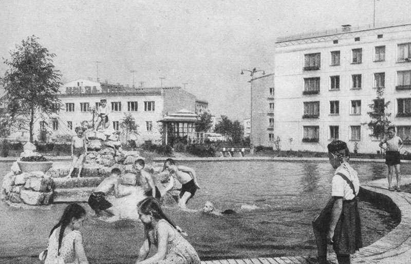 Плескательный бассейн с горкой в 9-м квартале Новых Черемушек, 1958 год