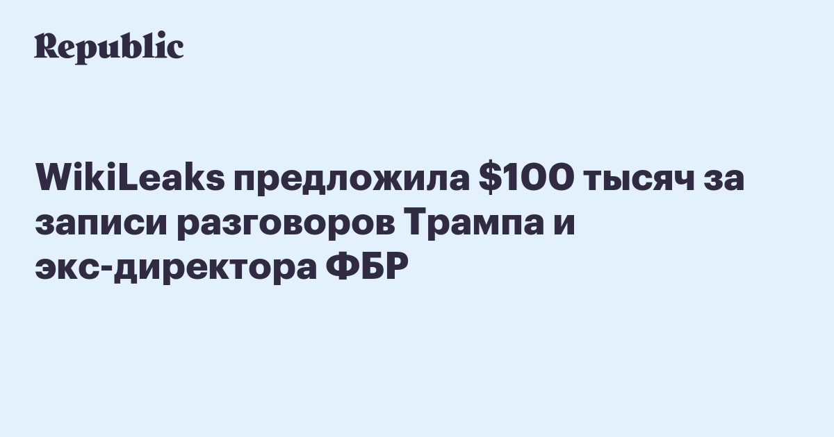 Организация WikiLeaks предложила $100 тысяч тому, кто предоставит ей в распоряжение записи разговоров президента США Дональда Трампа и бывшего директора ФБР Джеймса Коми. Об этом сообщается в твиттере организации.