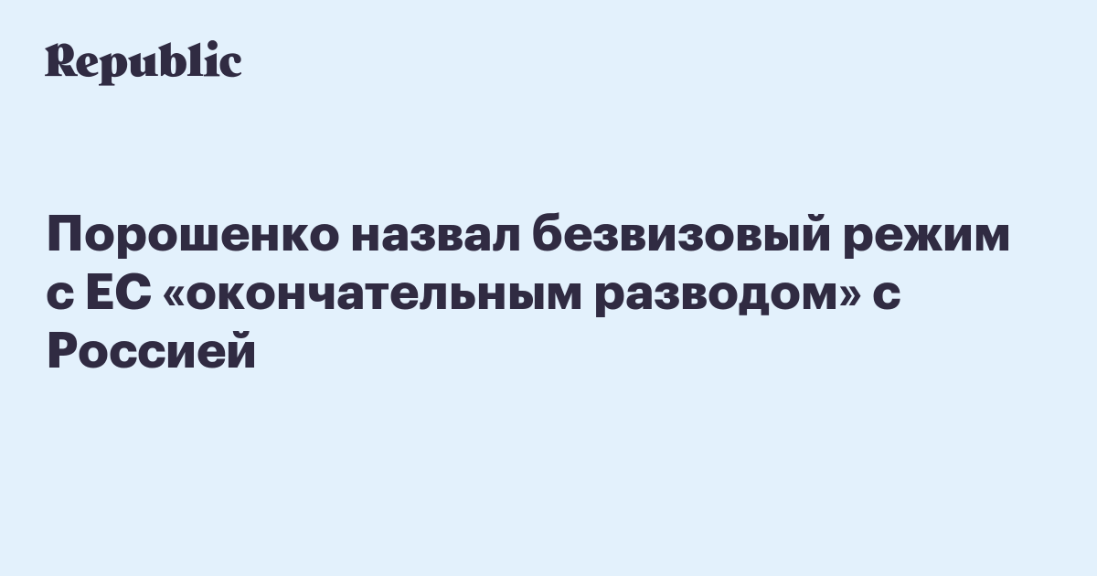 Порошенко назвал безвизовый режим с ЕС «окончательным разводом» с Россией